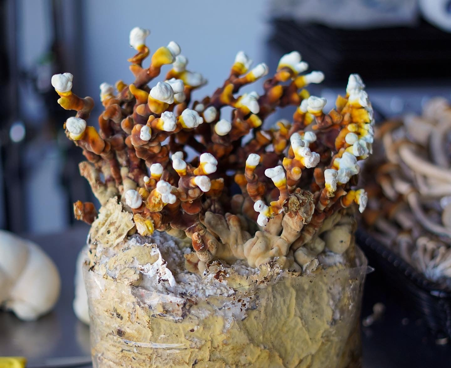 All of the mushrooms that we are able to cultivate are grown in house
